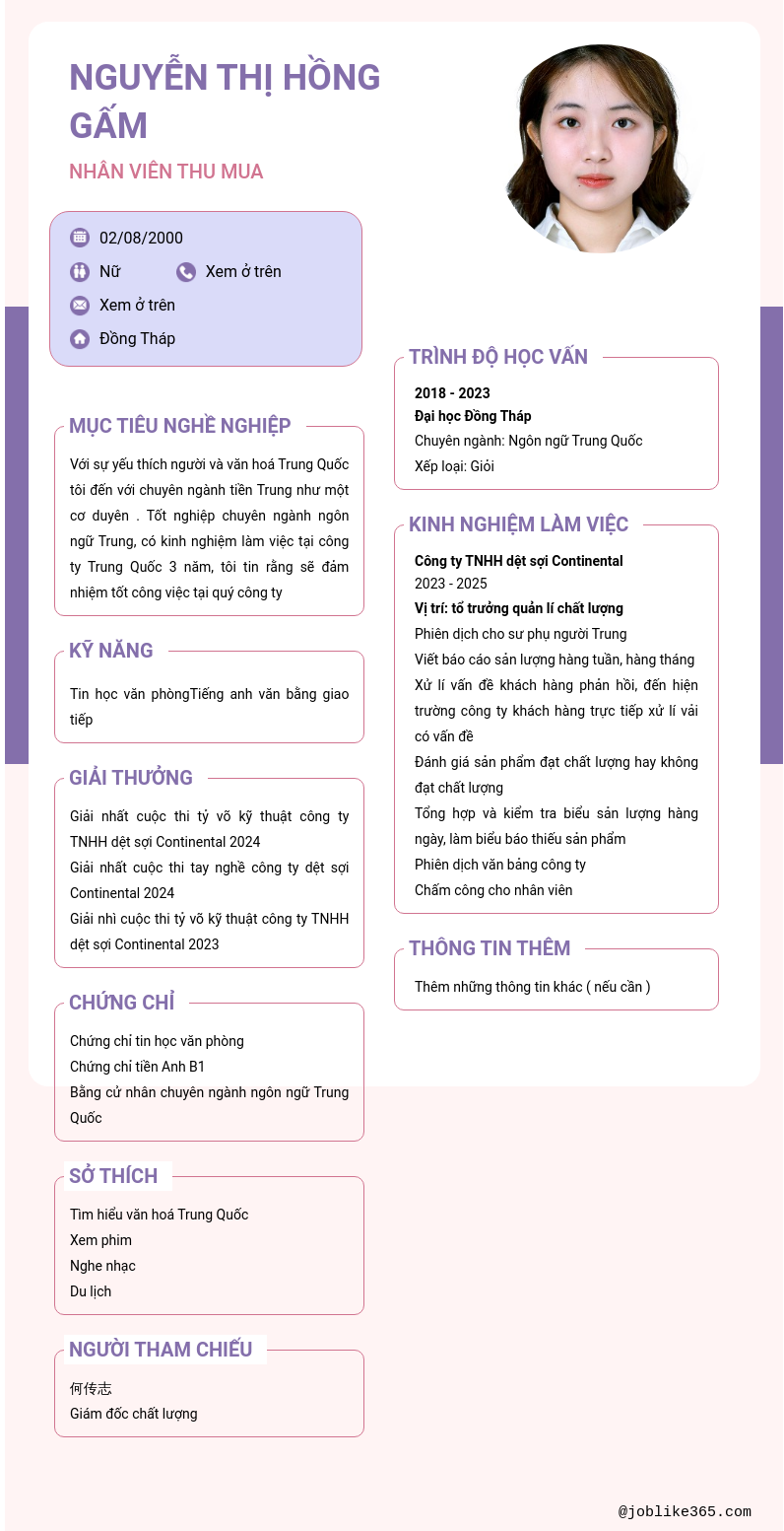 Xem hồ sơ ứng viên Nguyễn Thị Hồng Gấm cần 2 điểm. Hồ sơ được cập nhật ngày: 11/03/2025