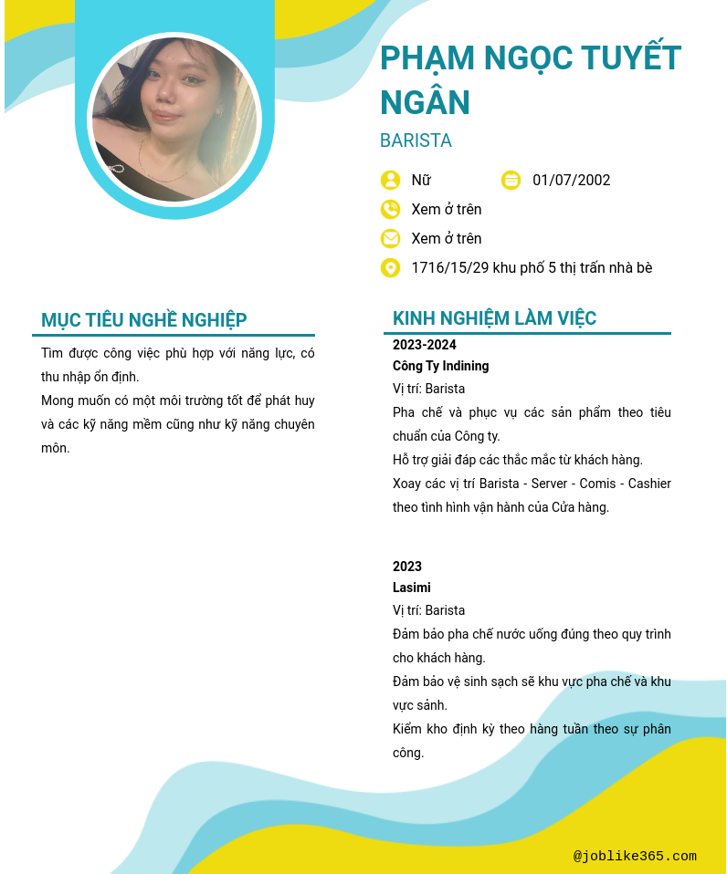 Xem hồ sơ ứng viên Phạm Ngọc Tuyết Ngân cần 2 điểm. Hồ sơ được cập nhật ngày: 16/07/2024