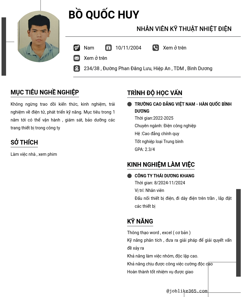 Xem hồ sơ ứng viên Bồ Quốc Huy cần 2 điểm. Hồ sơ được cập nhật ngày: 17/04/2025