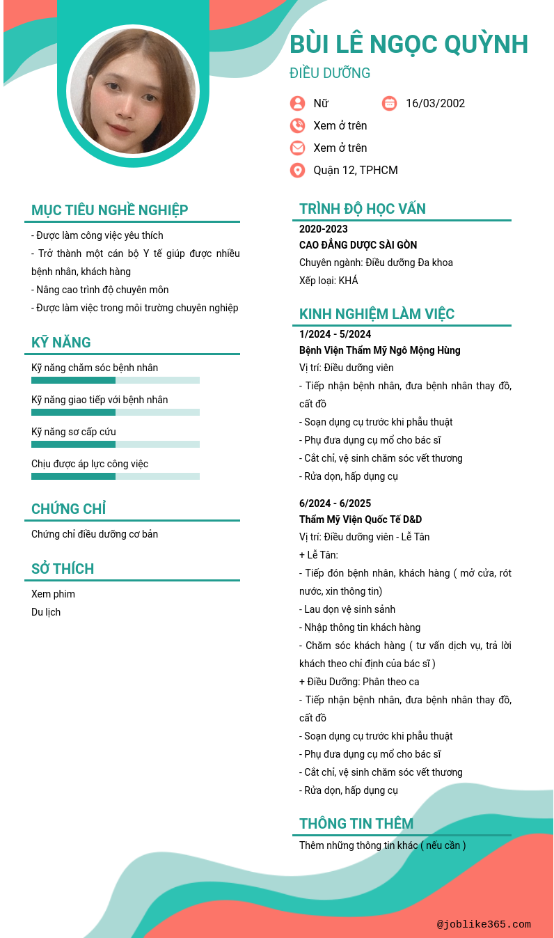 Xem hồ sơ ứng viên BÙI LÊ NGỌC QUỲNH cần 2 điểm. Hồ sơ được cập nhật ngày: 07/09/2025
