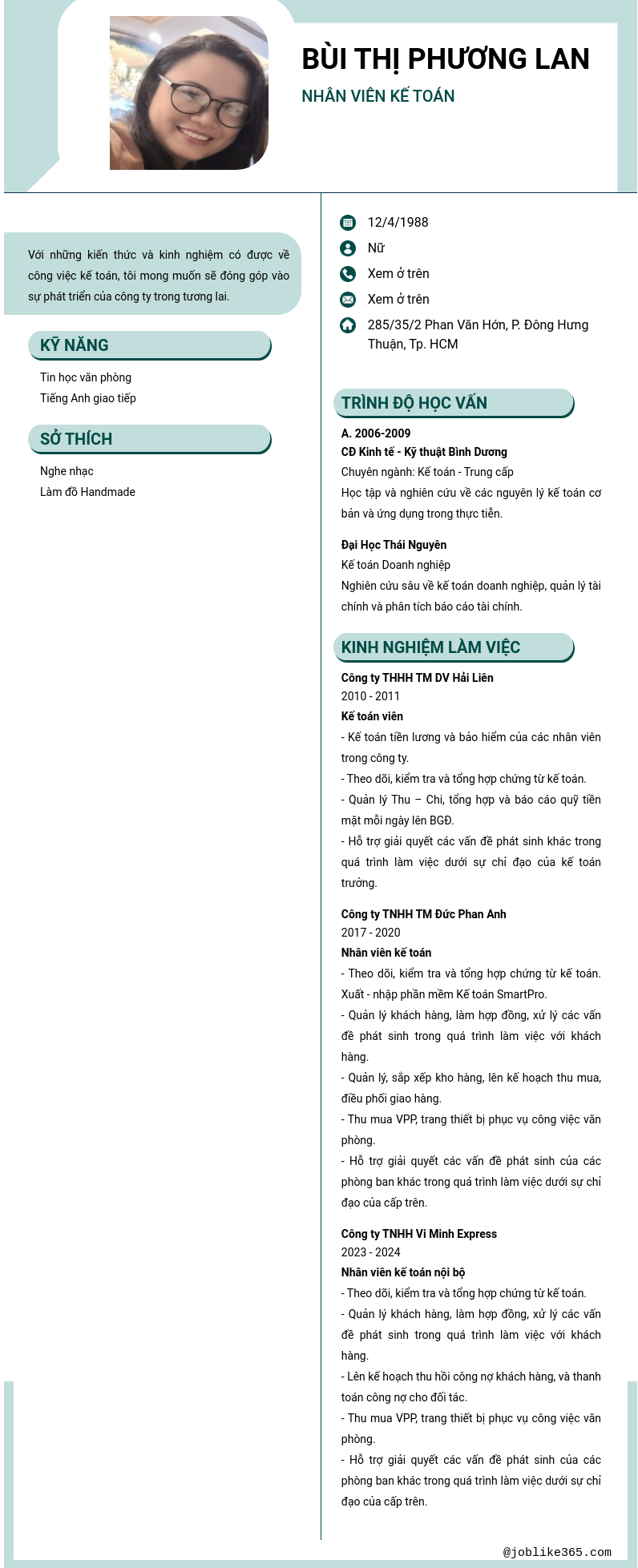 Xem hồ sơ ứng viên bùi thị phương lan cần 2 điểm. Hồ sơ được cập nhật ngày: 25/10/2025