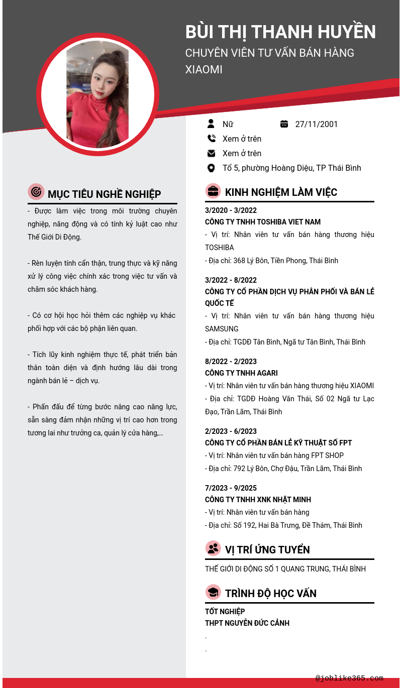 Xem hồ sơ ứng viên BÙI THỊ THANH HUYỀN cần 2 điểm. Hồ sơ được cập nhật ngày: 24/09/2025