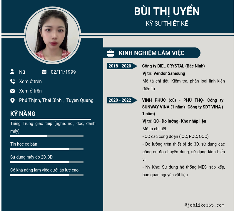 Xem hồ sơ ứng viên bùi thị uyển cần 2 điểm. Hồ sơ được cập nhật ngày: 02/04/2026