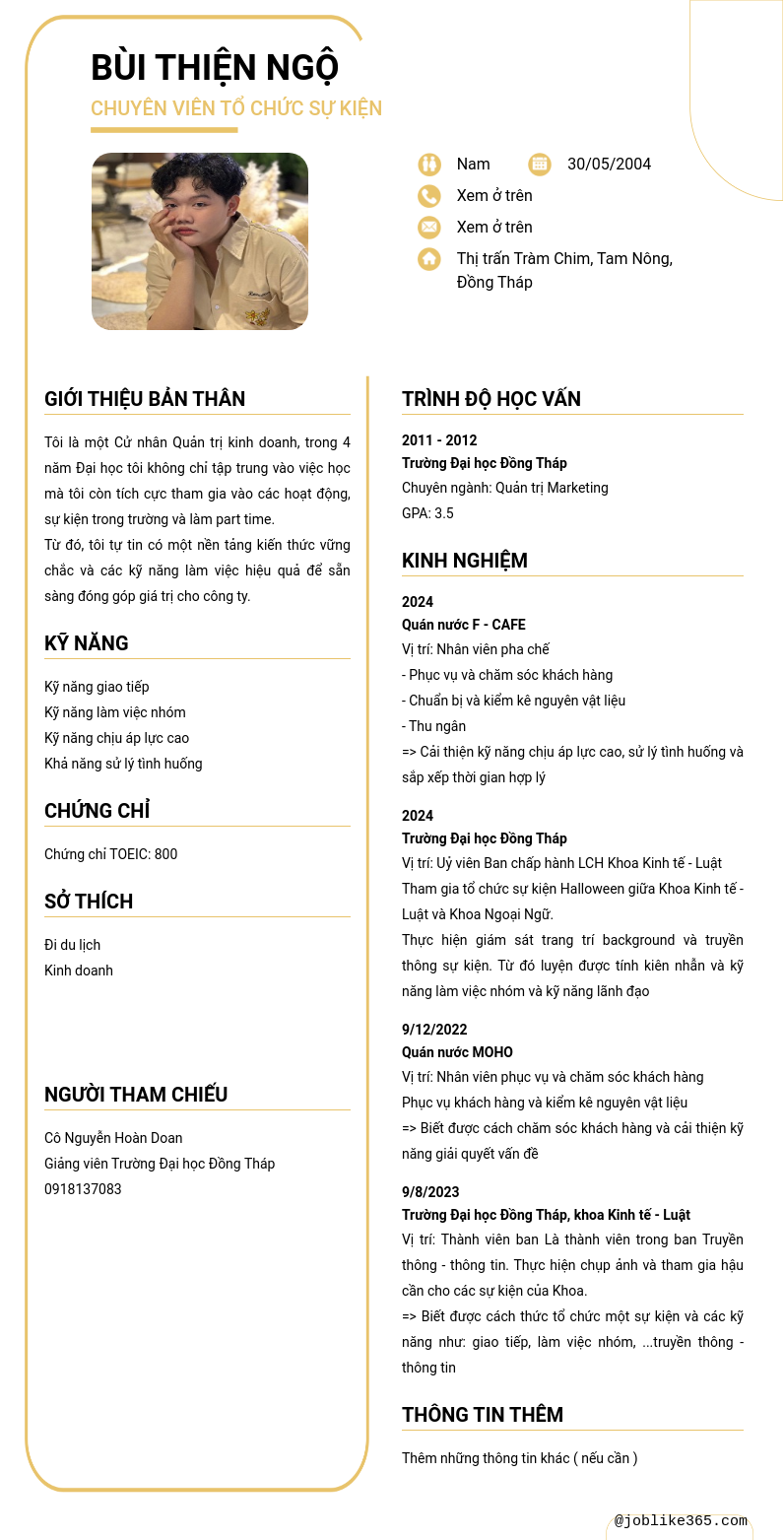 Xem hồ sơ ứng viên BÙI THIỆN NGỘ cần 2 điểm. Hồ sơ được cập nhật ngày: 24/11/2024