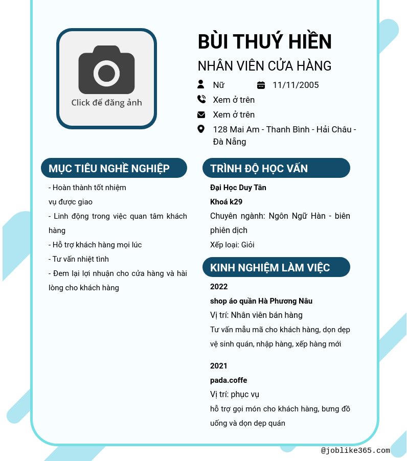 Xem hồ sơ ứng viên Bùi Thuý Hiền cần 2 điểm. Hồ sơ được cập nhật ngày: 03/11/2024