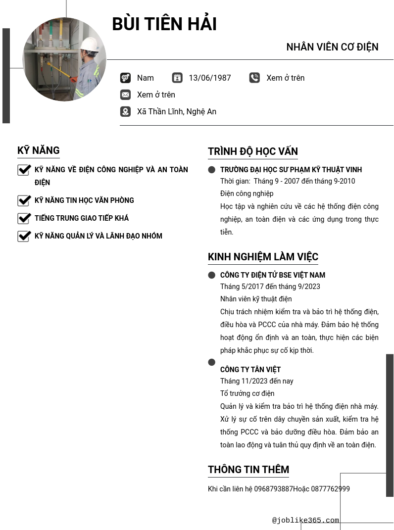Xem hồ sơ ứng viên Bùi Tiên Hải cần 2 điểm. Hồ sơ được cập nhật ngày: 11/11/2025