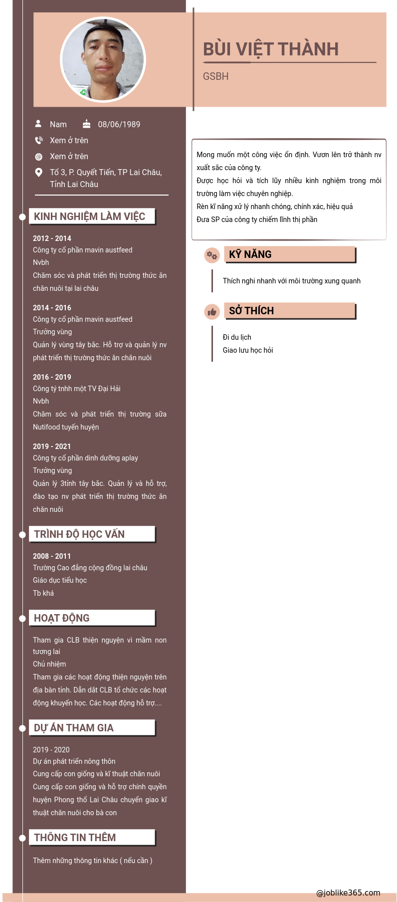 Xem hồ sơ ứng viên BÙI VIỆT THÀNH cần 2 điểm. Hồ sơ được cập nhật ngày: 28/05/2024