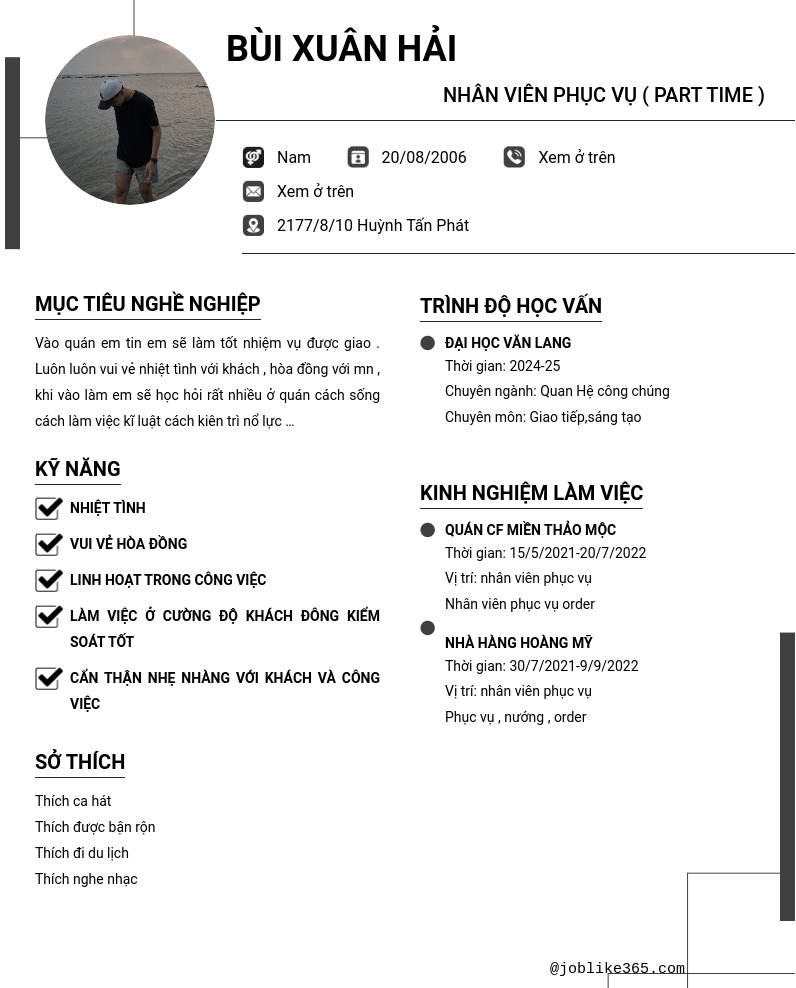 Xem hồ sơ ứng viên Bùi Xuân Hải cần 2 điểm. Hồ sơ được cập nhật ngày: 03/10/2024