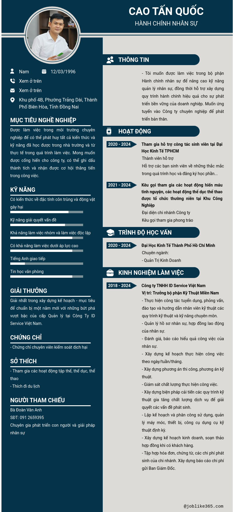 Xem hồ sơ ứng viên Cao Tấn Quốc cần 2 điểm. Hồ sơ được cập nhật ngày: 11/04/2026