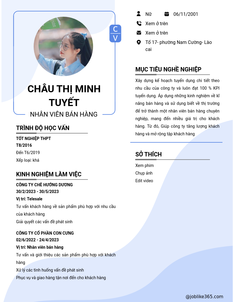 Xem hồ sơ ứng viên CHÂU THỊ MINH TUYẾT cần 2 điểm. Hồ sơ được cập nhật ngày: 18/06/2024