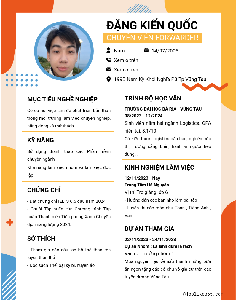 Xem hồ sơ ứng viên đặng kiến quốc cần 2 điểm. Hồ sơ được cập nhật ngày: 01/01/2025