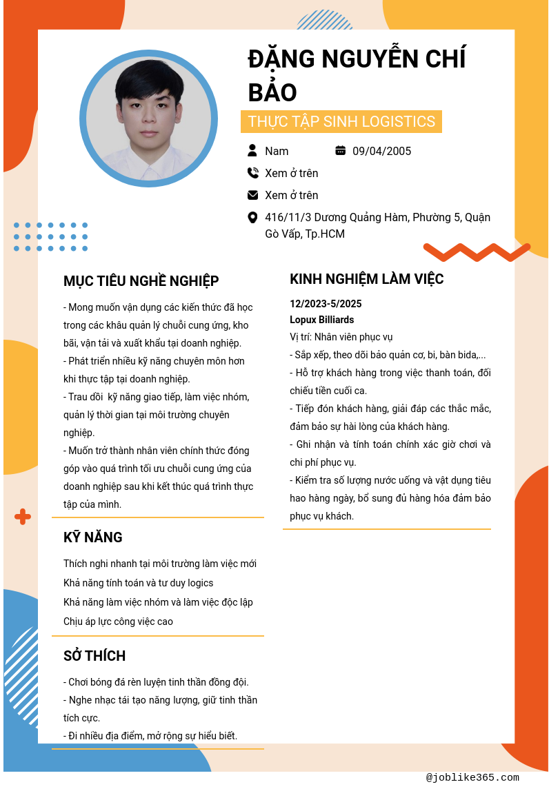 Xem hồ sơ ứng viên đặng nguyễn chí bảo cần 2 điểm. Hồ sơ được cập nhật ngày: 30/09/2025