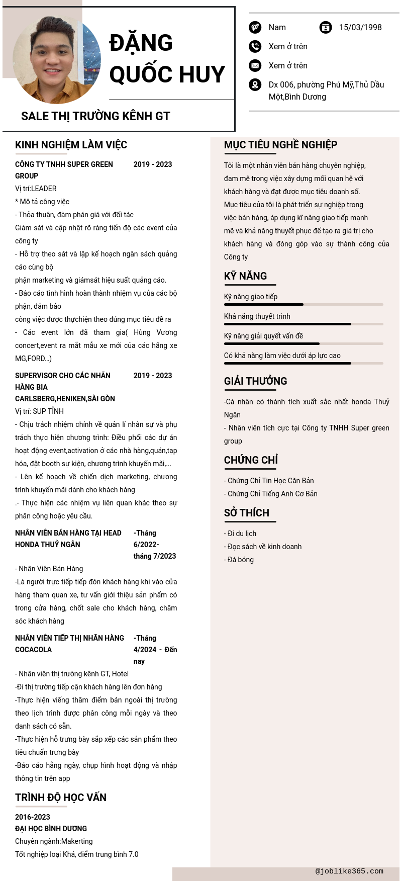 Xem hồ sơ ứng viên ĐẶNG QUỐC HUY cần 2 điểm. Hồ sơ được cập nhật ngày: 25/02/2025