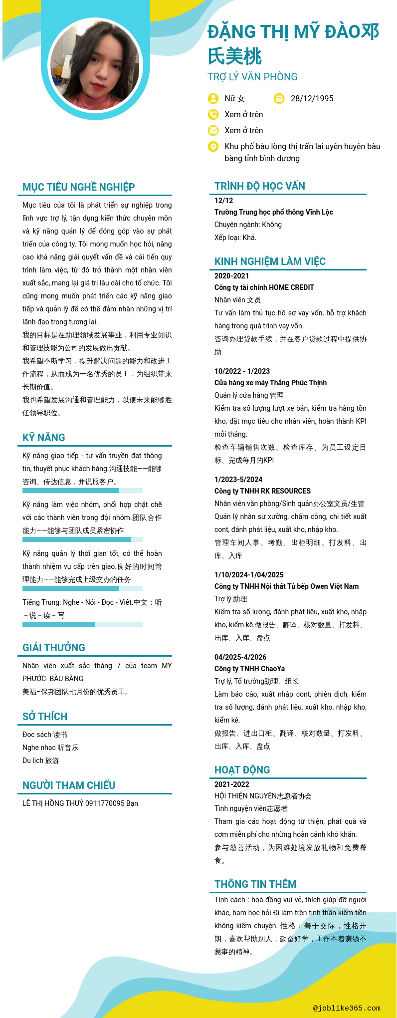 Xem hồ sơ ứng viên ĐẶNG THỊ MỸ ĐÀO邓氏美桃 cần 2 điểm. Hồ sơ được cập nhật ngày: 14/04/2026