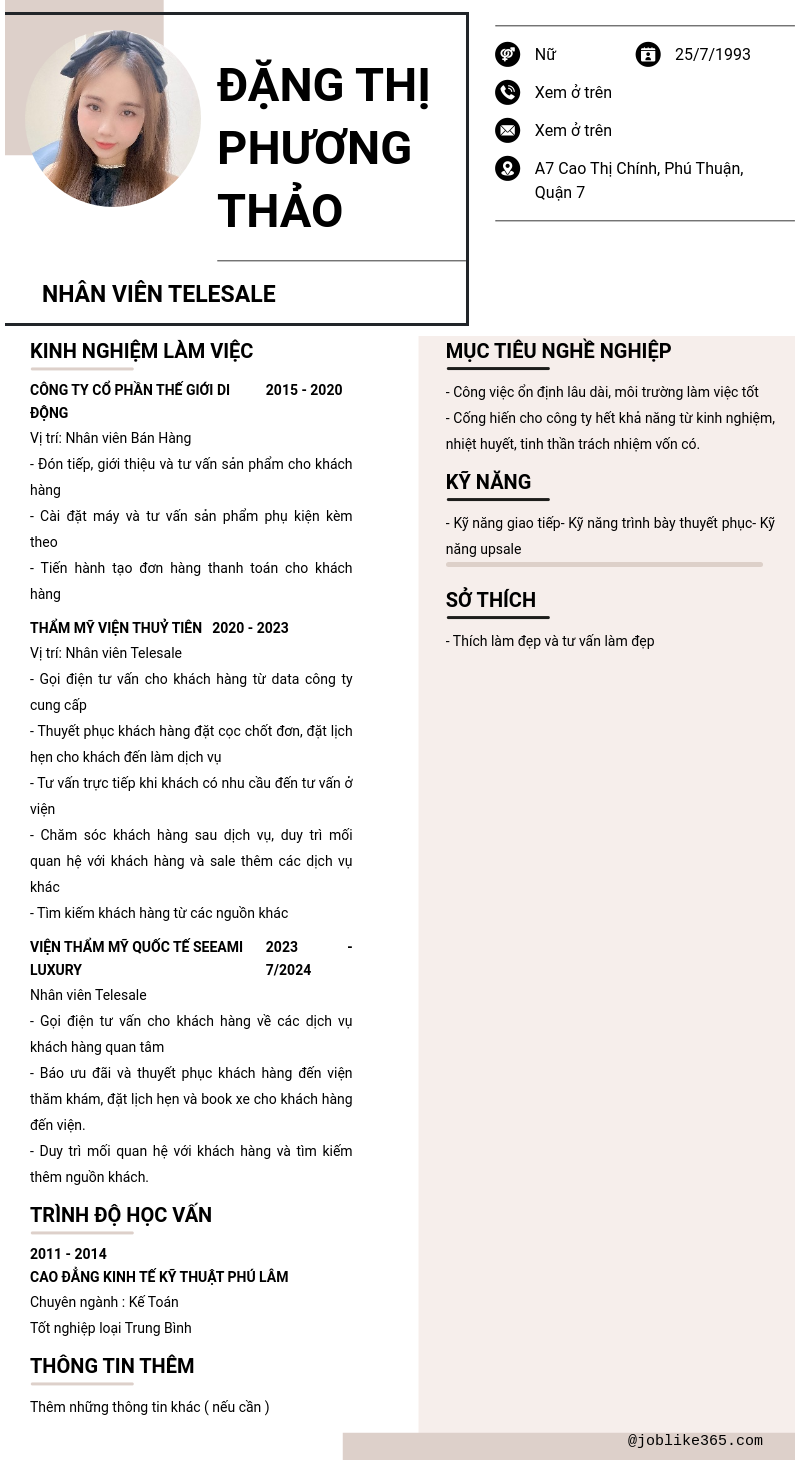 Xem hồ sơ ứng viên Đặng Thị Phương Thảo cần 2 điểm. Hồ sơ được cập nhật ngày: 04/10/2024