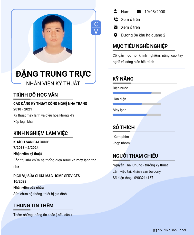 Xem hồ sơ ứng viên ĐẶNG TRUNG TRỰC cần 2 điểm. Hồ sơ được cập nhật ngày: 25/05/2025