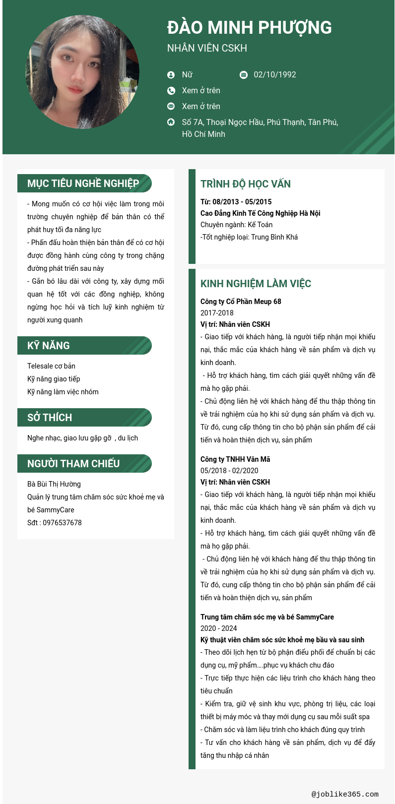 Xem hồ sơ ứng viên Đào Minh Phượng cần 2 điểm. Hồ sơ được cập nhật ngày: 08/10/2024
