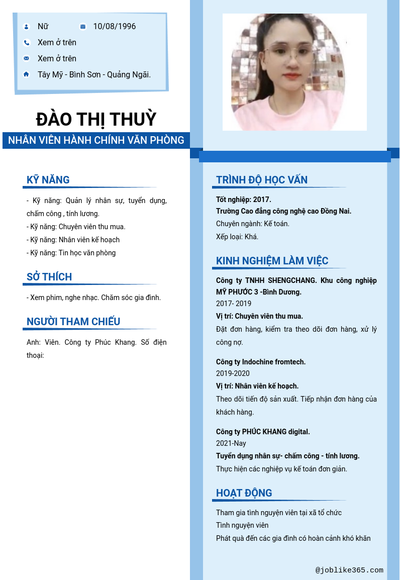 Xem hồ sơ ứng viên ĐÀO THỊ THUỲ cần 2 điểm. Hồ sơ được cập nhật ngày: 10/02/2026