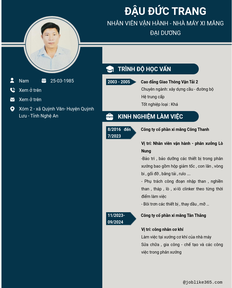 Xem hồ sơ ứng viên Đậu Đức Trang cần 2 điểm. Hồ sơ được cập nhật ngày: 30/09/2024