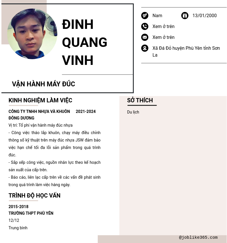 Xem hồ sơ ứng viên ĐINH QUANG VINH cần 2 điểm. Hồ sơ được cập nhật ngày: 24/07/2024