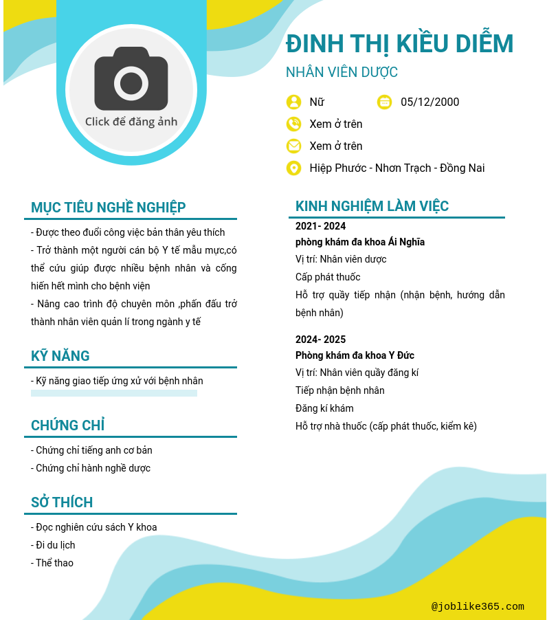 Xem hồ sơ ứng viên ĐINH THỊ KIỀU DIỄM cần 2 điểm. Hồ sơ được cập nhật ngày: 21/09/2025