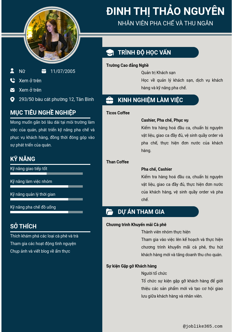 Xem hồ sơ ứng viên Đinh Thị Thảo Nguyên cần 2 điểm. Hồ sơ được cập nhật ngày: 15/05/2025
