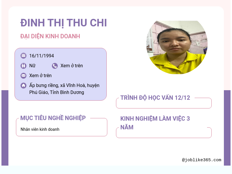 Xem hồ sơ ứng viên Đinh Thị Thu Chi cần 2 điểm. Hồ sơ được cập nhật ngày: 14/07/2024