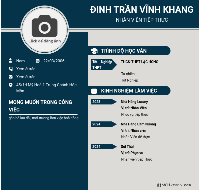 Xem hồ sơ ứng viên Đinh Trần Vĩnh Khang cần 2 điểm. Hồ sơ được cập nhật ngày: 22/11/2024