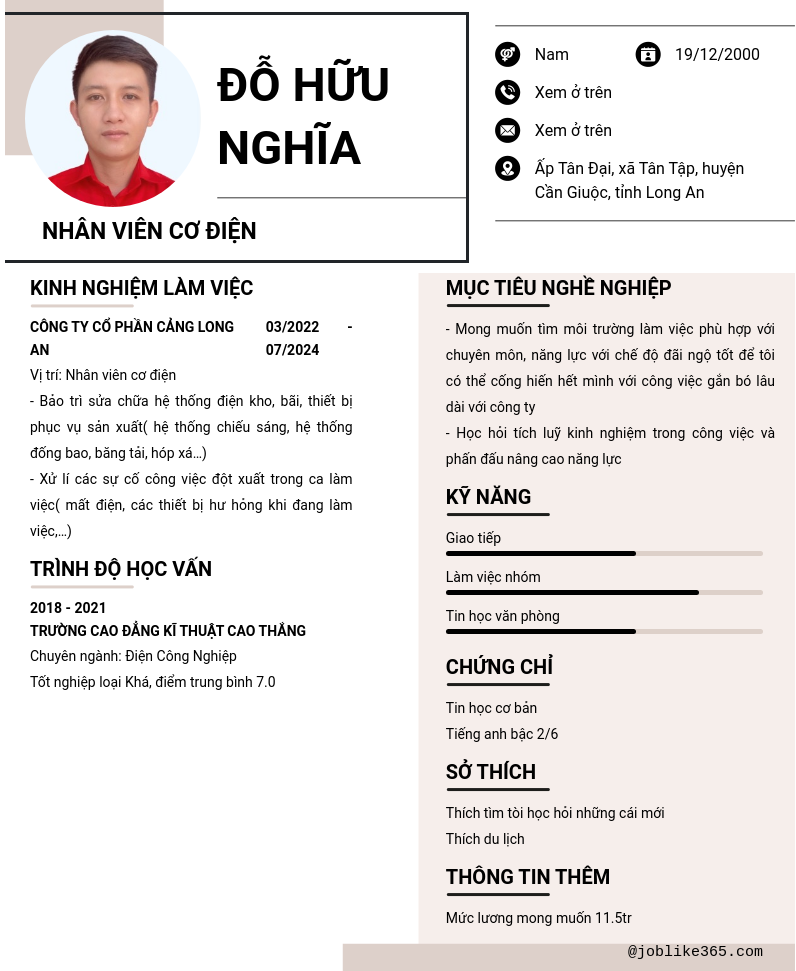 Xem hồ sơ ứng viên Đỗ Hữu Nghĩa cần 2 điểm. Hồ sơ được cập nhật ngày: 15/08/2024