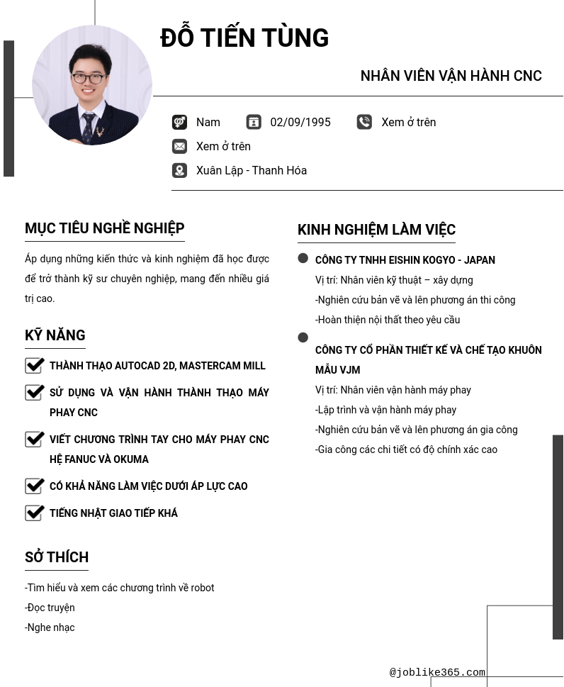 Công việc mong muốn nhân viên vận hành cnc