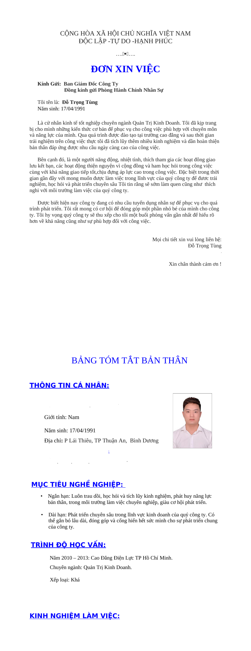 Mẫu CV xin việc