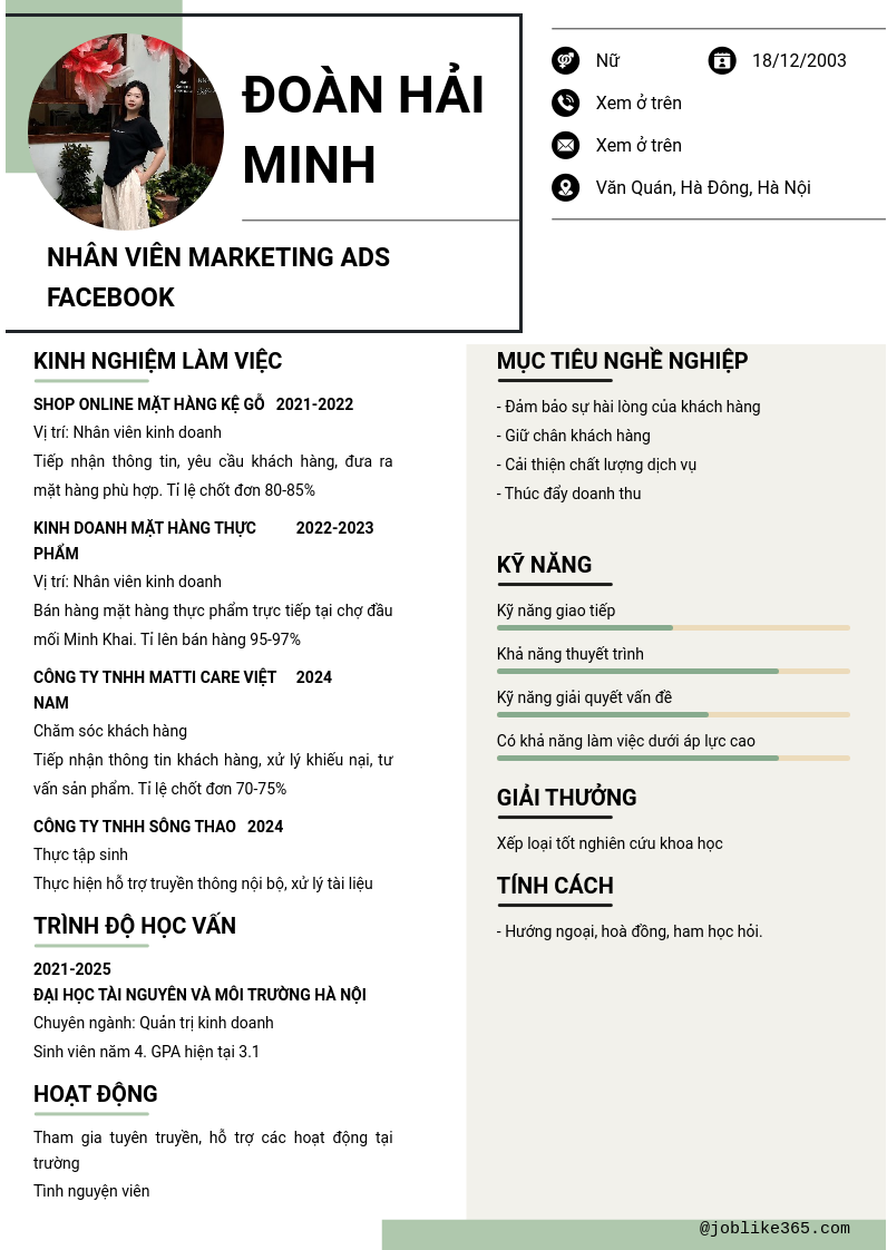 Xem hồ sơ ứng viên Đoàn Hải Minh cần 2 điểm. Hồ sơ được cập nhật ngày: 04/02/2025