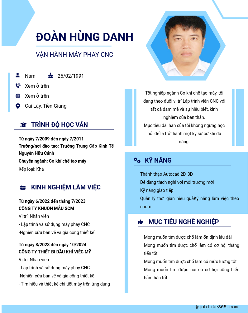Xem hồ sơ ứng viên ĐOÀN HÙNG DANH cần 2 điểm. Hồ sơ được cập nhật ngày: 18/11/2024