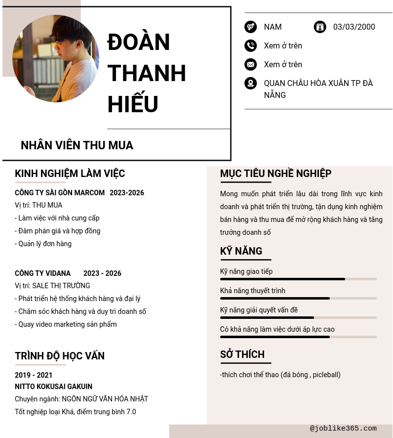 Xem hồ sơ ứng viên đoàn thanh hiếu cần 2 điểm. Hồ sơ được cập nhật ngày: 29/03/2026