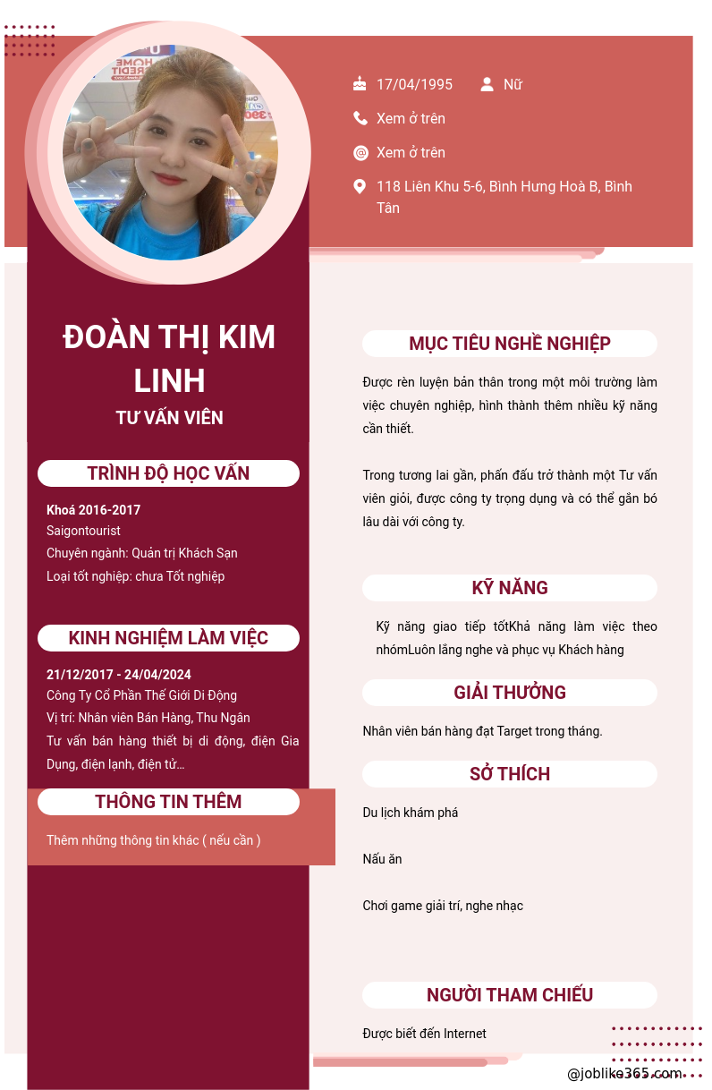 Xem hồ sơ ứng viên ĐOÀN THỊ KIM LINH cần 2 điểm. Hồ sơ được cập nhật ngày: 19/06/2024