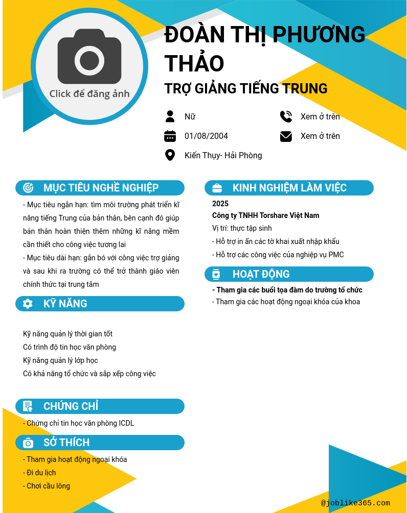 Xem hồ sơ ứng viên đoàn thị phương thảo cần 2 điểm. Hồ sơ được cập nhật ngày: 14/07/2025