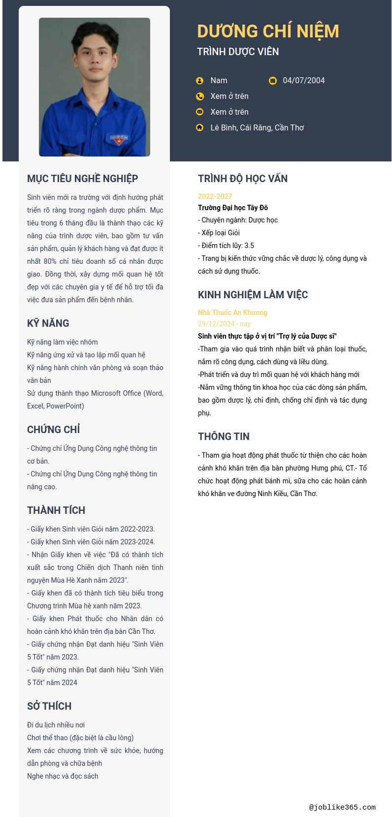 Xem hồ sơ ứng viên DƯƠNG CHÍ NIỆM cần 2 điểm. Hồ sơ được cập nhật ngày: 22/06/2025