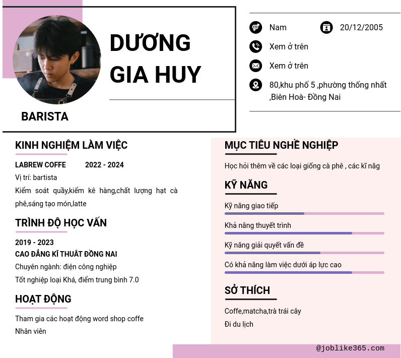 Xem hồ sơ ứng viên Dương Gia Huy cần 2 điểm. Hồ sơ được cập nhật ngày: 24/12/2024