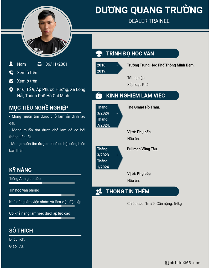 Xem hồ sơ ứng viên DƯƠNG QUANG TRƯỜNG cần 2 điểm. Hồ sơ được cập nhật ngày: 04/10/2025