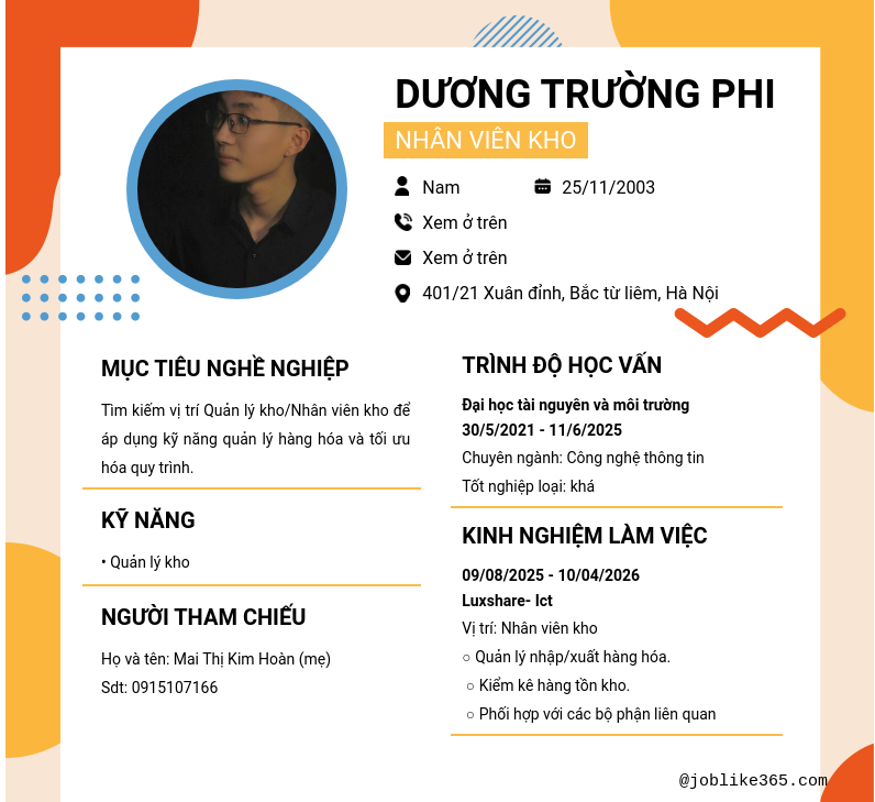 Xem hồ sơ ứng viên Dương Trường Phi cần 2 điểm. Hồ sơ được cập nhật ngày: 29/04/2026