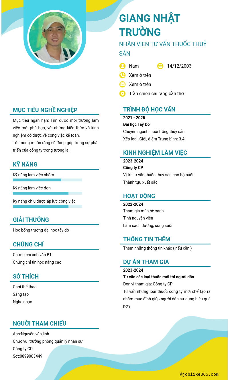 Xem hồ sơ ứng viên Giang Nhật Trường cần 2 điểm. Hồ sơ được cập nhật ngày: 01/10/2024