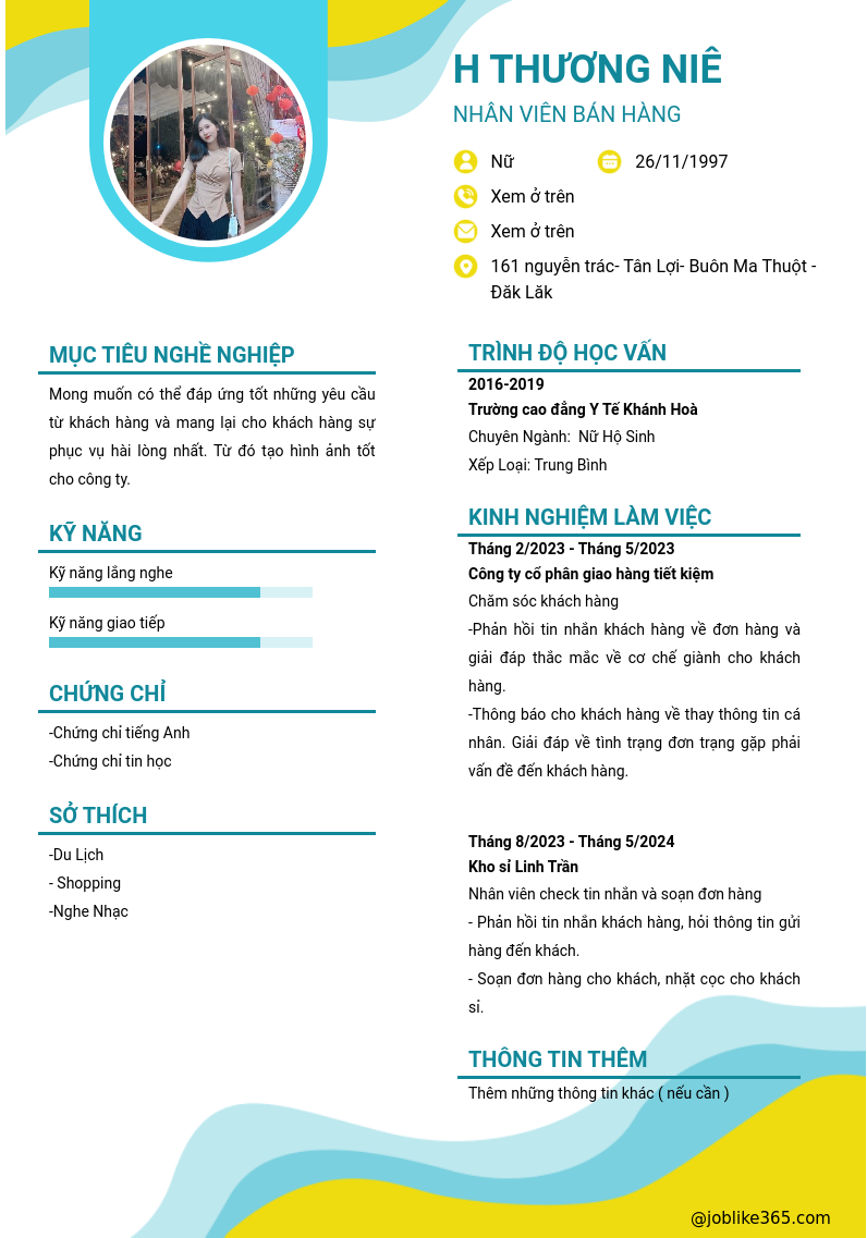 Xem hồ sơ ứng viên H Thương Niê cần 2 điểm. Hồ sơ được cập nhật ngày: 04/06/2024