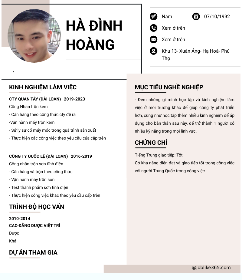 Xem hồ sơ ứng viên HÀ ĐÌNH HOÀNG cần 2 điểm. Hồ sơ được cập nhật ngày: 21/10/2024