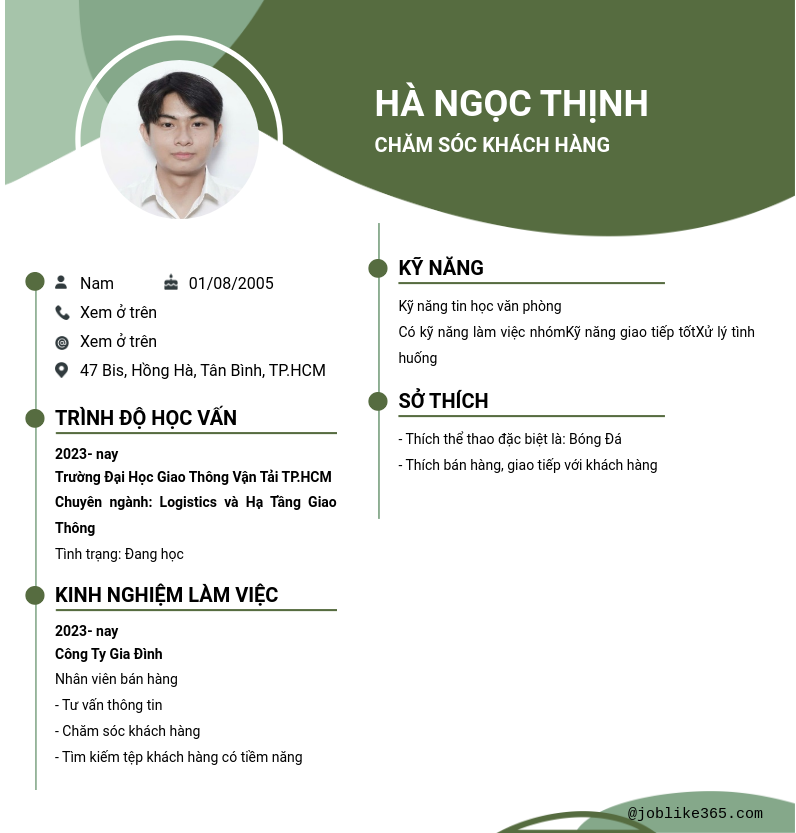 Xem hồ sơ ứng viên hà ngọc thịnh cần 2 điểm. Hồ sơ được cập nhật ngày: 13/06/2025