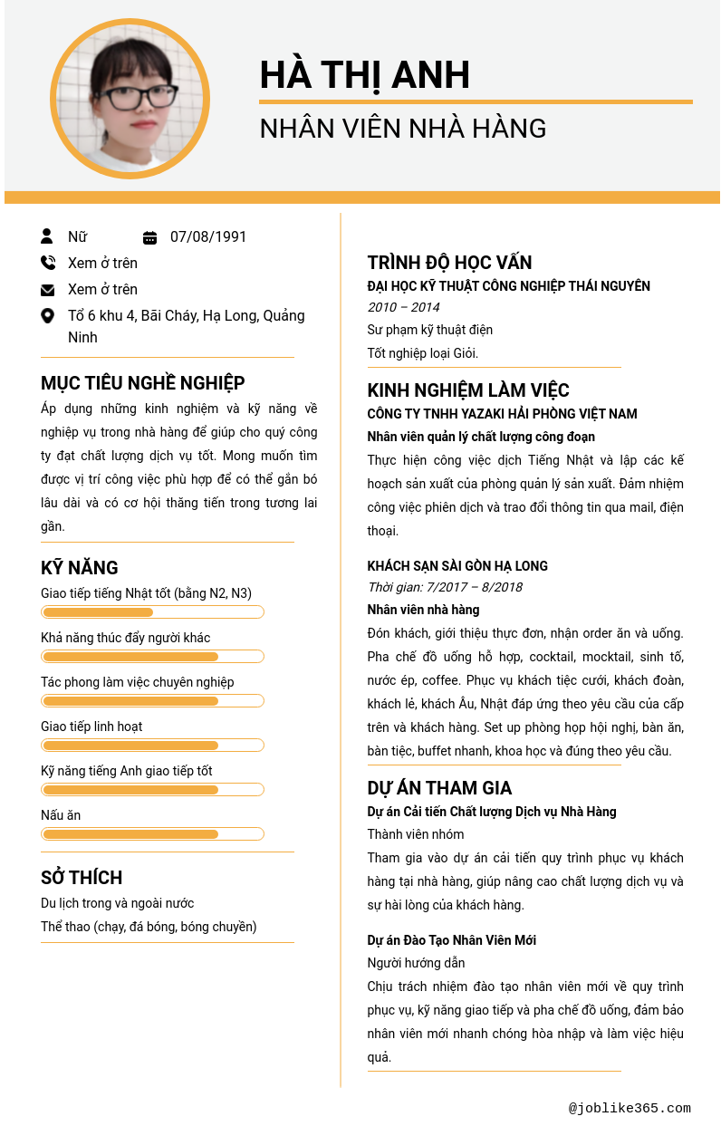 Xem hồ sơ ứng viên HÀ THỊ ANH cần 2 điểm. Hồ sơ được cập nhật ngày: 08/05/2025