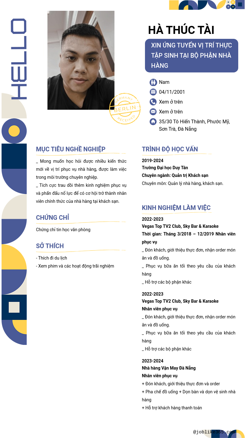 Xem hồ sơ ứng viên Hà Thúc Tài cần 2 điểm. Hồ sơ được cập nhật ngày: 13/09/2024