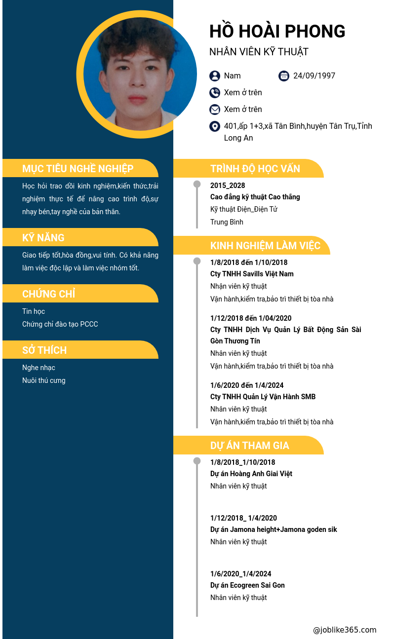 Xem hồ sơ ứng viên HỒ HOÀI PHONG cần 2 điểm. Hồ sơ được cập nhật ngày: 21/05/2025