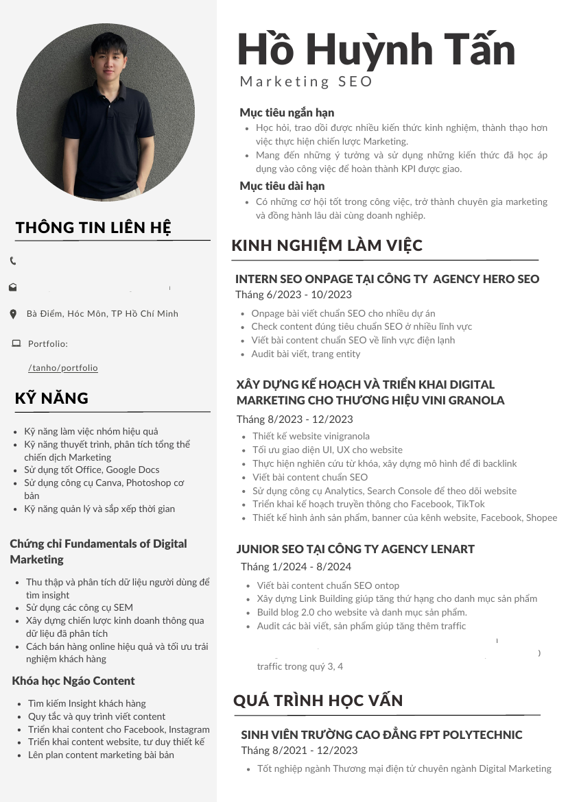 Xem hồ sơ ứng viên Hồ Huỳnh Tấn cần 2 điểm. Hồ sơ được cập nhật ngày: 22/10/2024