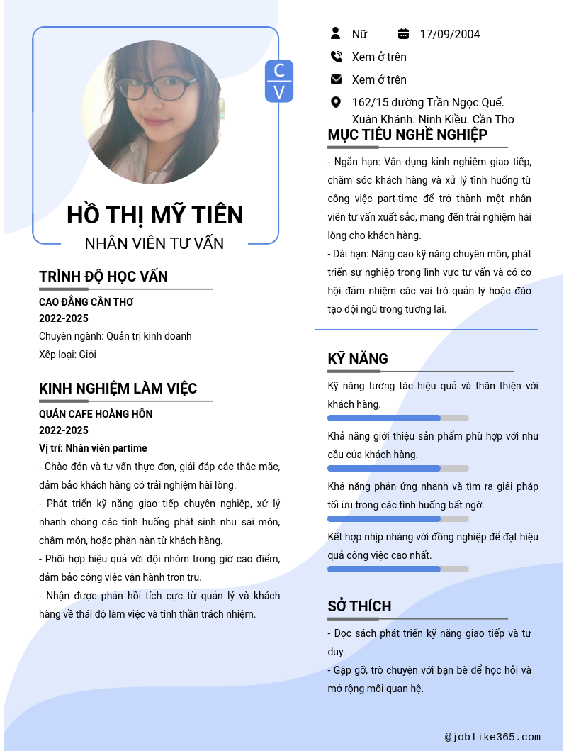 Xem hồ sơ ứng viên cần 2 điểm. Hồ sơ được cập nhật ngày: 07/01/2025