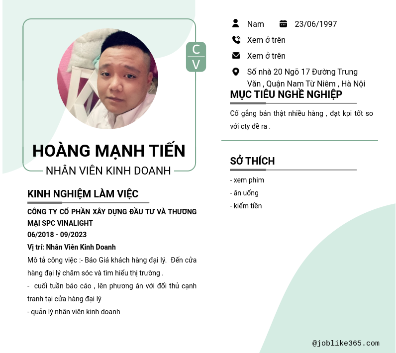Xem hồ sơ ứng viên Hoàng Mạnh Tiến cần 2 điểm. Hồ sơ được cập nhật ngày: 08/10/2024